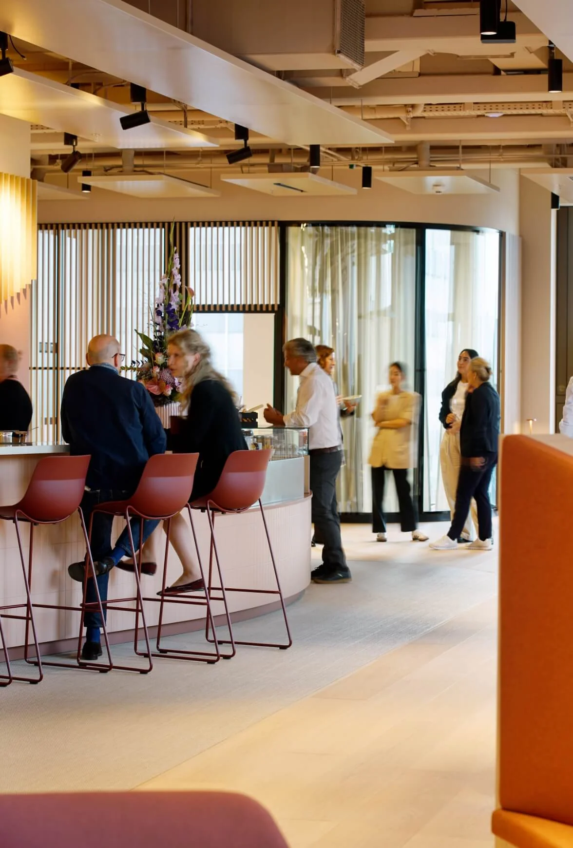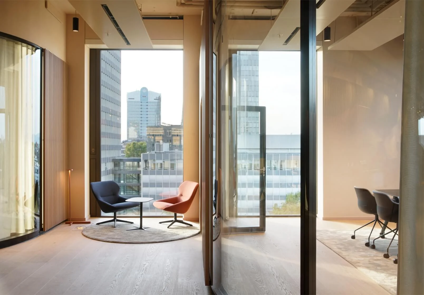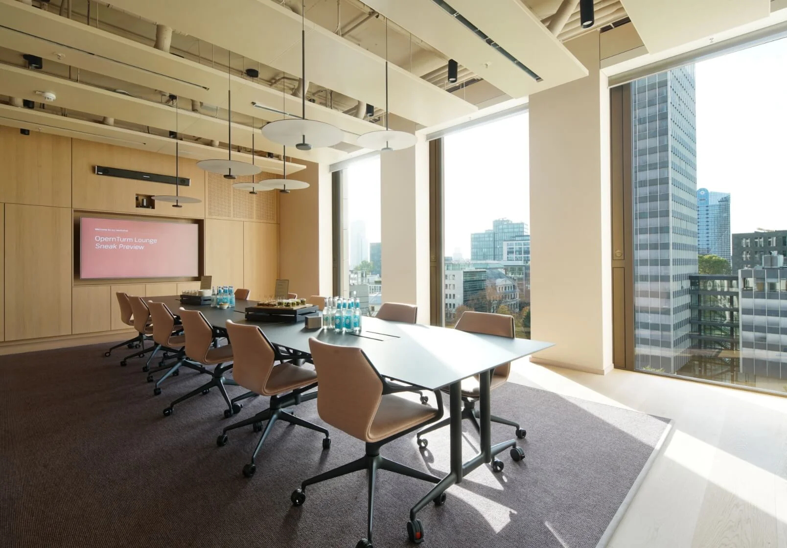 Eine atmosphärische Lounge in hochwertigem Design, eine neu gestaltete Dachterrasse mit Blick über Frankfurt und den Opernplatz, drei Konferenzräume und eine stilvolle Bar – die neue OpernTurm Lounge ist darauf ausgelegt, eine ganze Reihe an Mieterbedürfnissen auf zeitgemäße Art zu erfüllen. Das Raum-, Gastronomie- und Eventkonzept macht die Location zum beliebten Treffpunkt, einem Ort für Meet & Greet, für entspanntes Arbeiten, inspirierende Workshops, Konferenzen und Inhouse-Veranstaltungen.